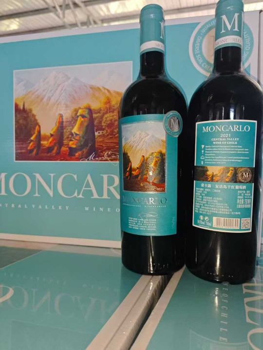 几十元一箱,蒙卡露复活岛,智利中央山谷产区,24斤超重瓶 ,躺箱,外箱覆膜,生产日期22年10月8号,14.5度,只有还有200多箱