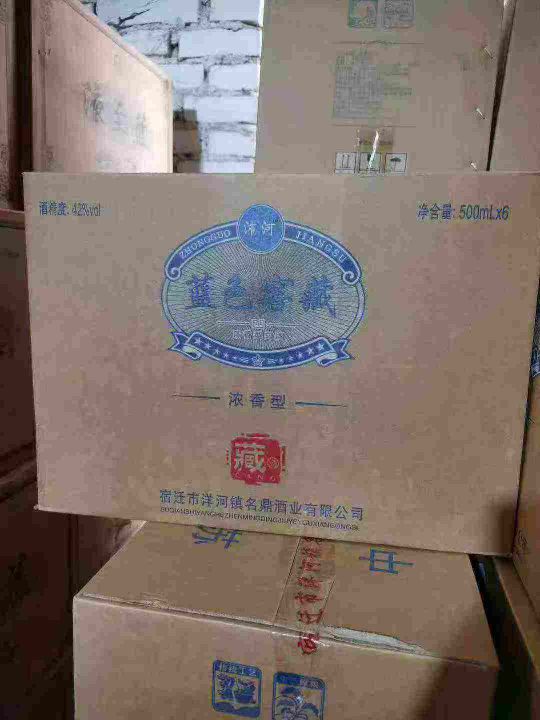 最后24箱蓝色窖藏,42度浓香型白酒,一箱6瓶,带手提袋,全清60元一箱,一箱起发70元。 货号:29195