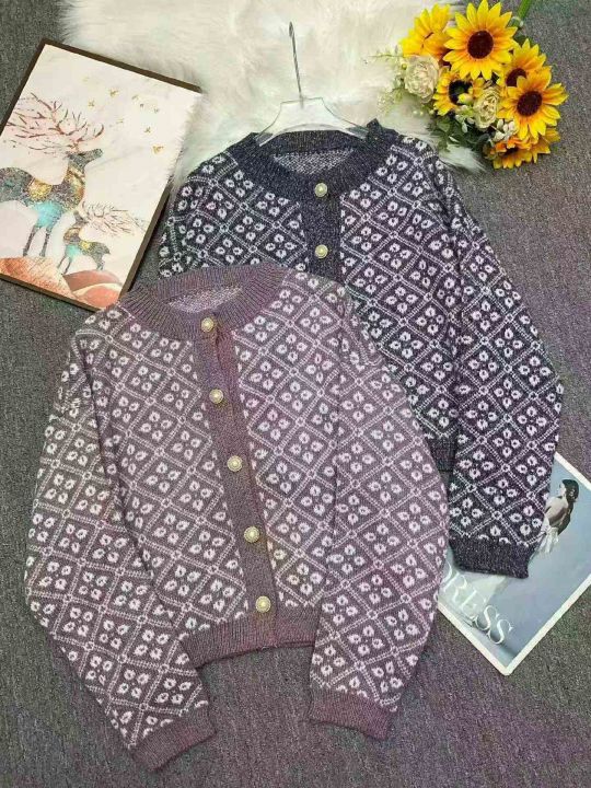 秋冬新款高品质女装欧洲站宽松慵懒风撞色小香风提花北极绒毛衣开衫,独立包...