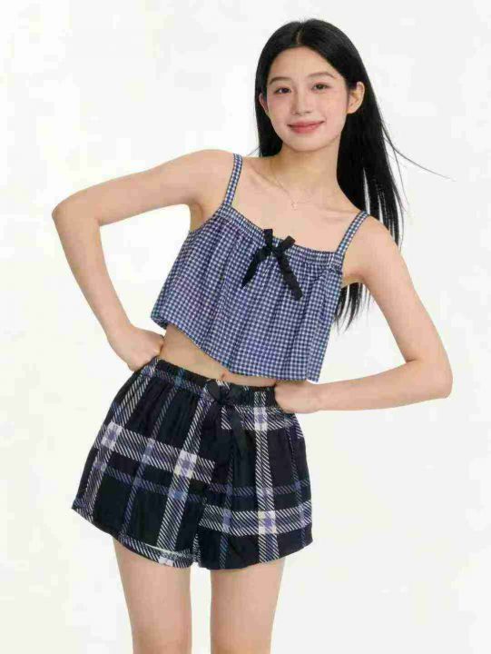3.5清电商仓回收1352件甜美系靓妹格子减龄波点俏皮休闲短裤,码数S-XL。面...