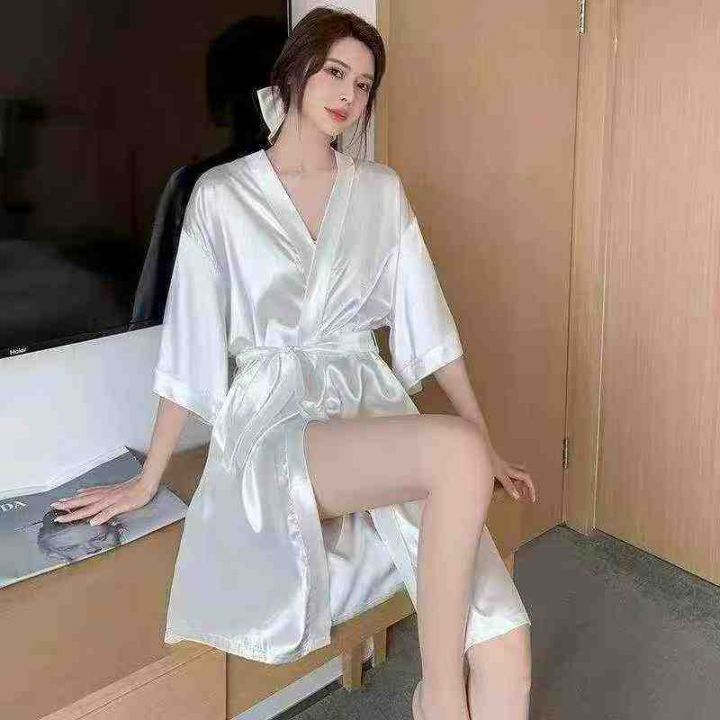 81件夏季男女冰丝薄款性感睡衣系带和服宽松浴袍,独立包装,均码
