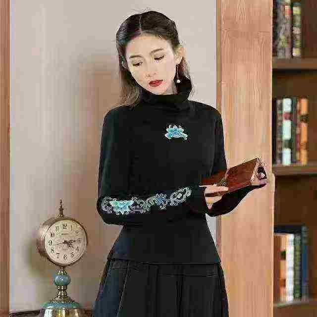 天猫下架,中国风秋装高领打底衫,刺绣工艺,两个颜色红色少,黑色有两种面...