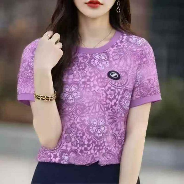 夏季2025新款短袖圆领高档时尚洋气显瘦宽松遮肉上衣,独立包装,整款2色,5...