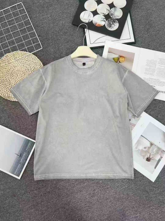 ☕️男女同款大版洗旧工艺纯色短袖T恤,319件全清6.8...