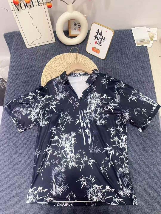 1827件,夏季男士V领T恤衫潮流休闲百搭宽松帅气印花免...