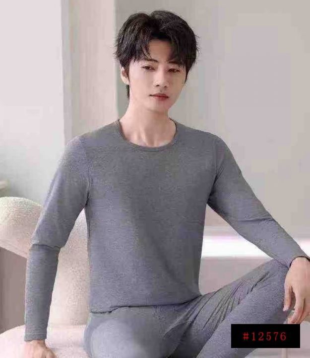 10000套雅鹿品牌男款圆领时尚加绒加厚德绒保暖套装,尺码L~4XL,内里婴儿...