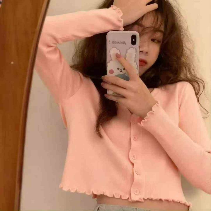 秋季新品净版简约木耳边多巴胺针织毛衣开衫,独立包装,均码面料柔软舒适弹力大,163件,全清6.9元超低价秒杀!