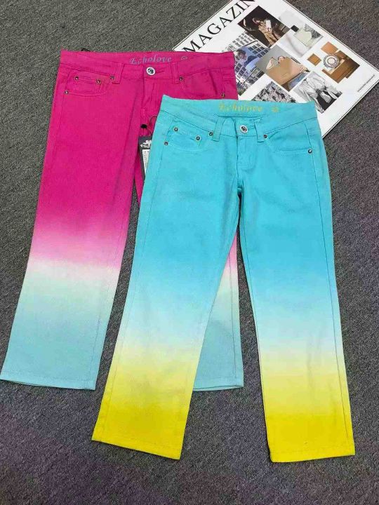 夏季新款复古原创扎染彩虹多巴胺弹力直筒烟管牛仔裤,独立包装,码数27-29 码, 60件左右,全清3.8元超低价秒杀!。 货号:24862