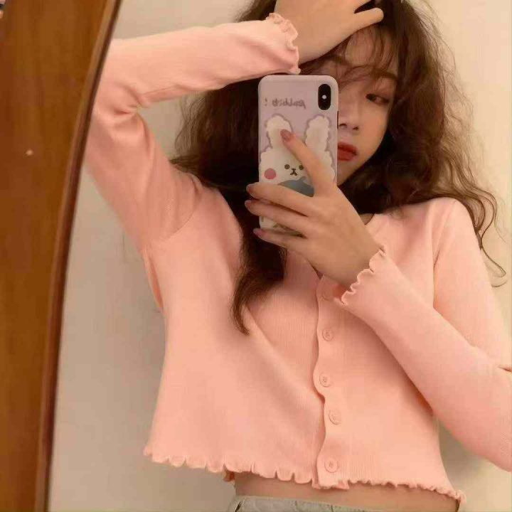 秋季新品净版简约木耳边多巴胺针织毛衣开衫,独立包装,均码面料柔软舒适弹力大,163件,全清6.9元超低价秒杀!。 货号:24862