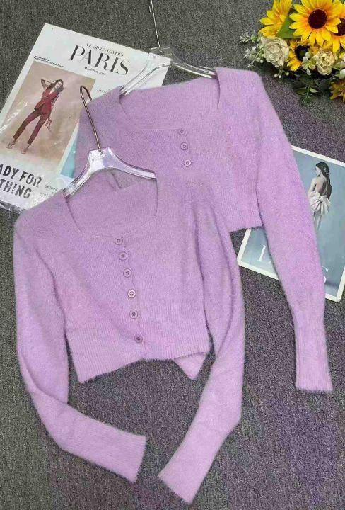 春秋新款法式复古紫色方领高级感弹力修身显瘦水貂毛针织毛衣开衫,独立包装,均码面料软糯舒适,100件,全清7.9元超低价秒杀!。 货号:24862