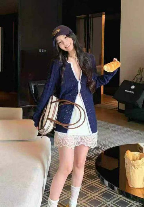 捡漏款,秋季新品纯欲辣妹撞色v领收腰显瘦百搭气质长...