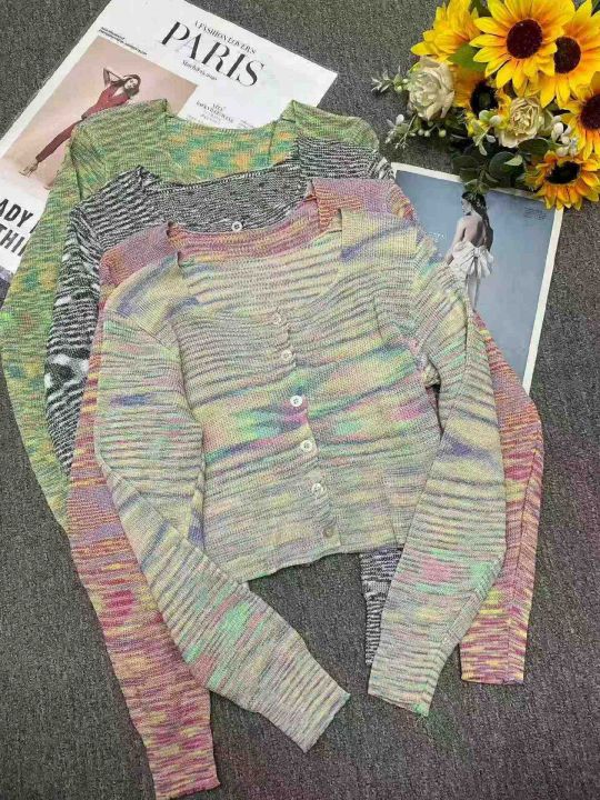 春秋新款网红复古撞色彩虹条纹针织毛衣开衫,独立包装...