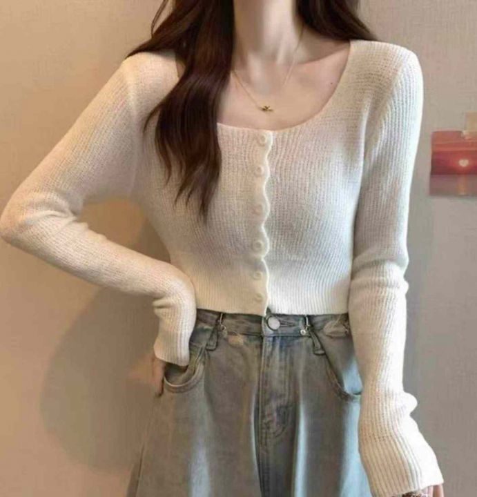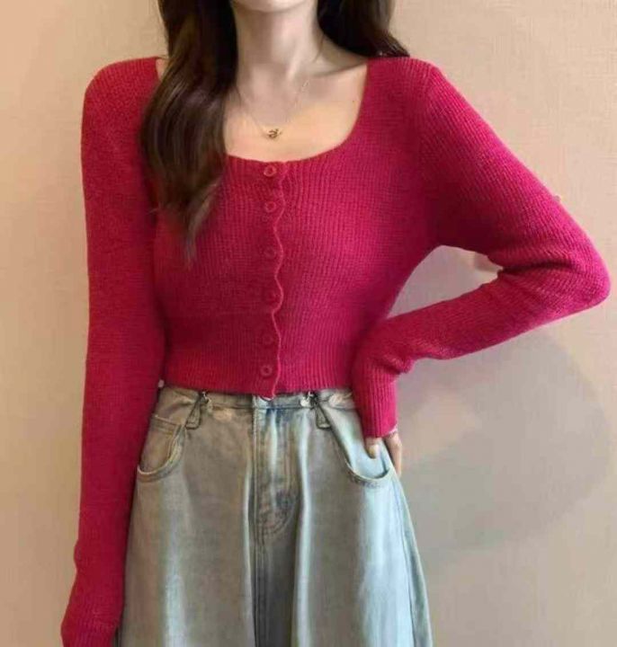 捡漏款,纯欲风春秋新款韩系气质方领弹力修身显瘦短款针织毛衣开衫,独立包装,均码年龄软糯舒适弹力大,30件,全清6.9元超低价秒杀!。 货号:24862