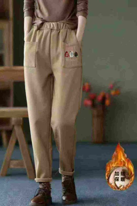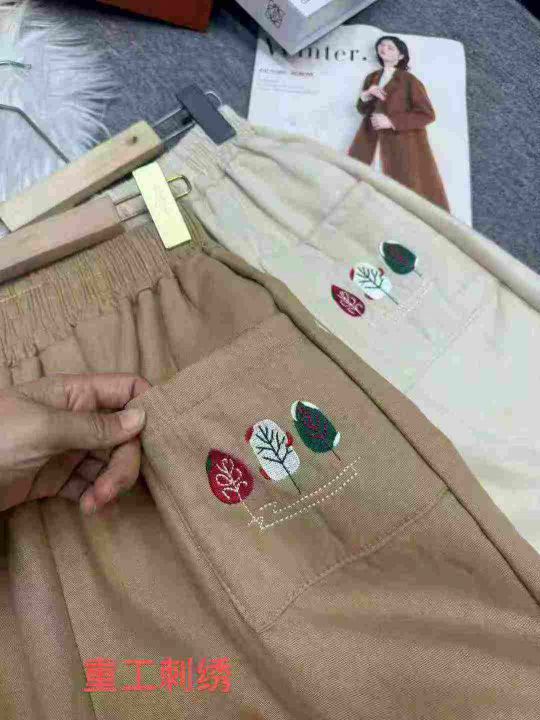 专柜品质女装棉麻加绒加厚哈伦裤休闲裤,独立包装,两整款,重工刺绣,大货杏和红色为主,码数2/4/5/6/7码(6/5码多),数量358条,货号1217#38