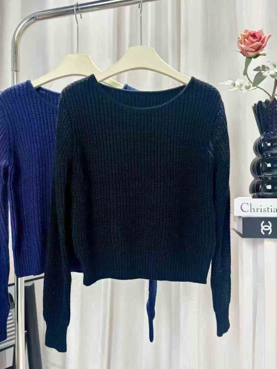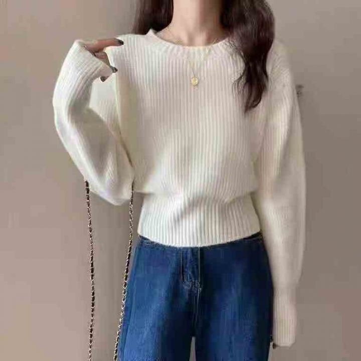 140件韩版chic简约气质长袖针织衫上衣靓妹款宽松百搭...