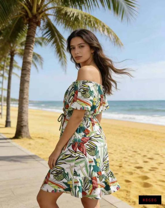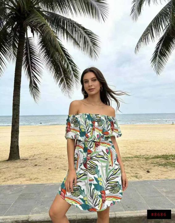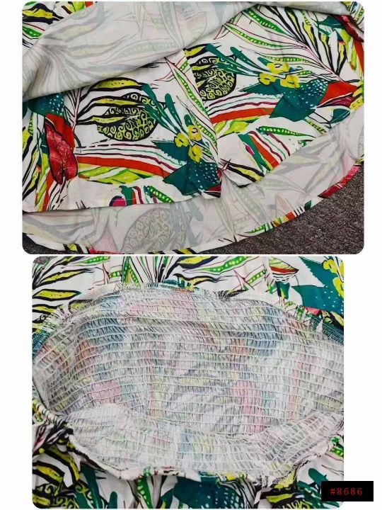 6.9清电商仓回收164件碎花度假风一字肩连衣裙,码数S-...