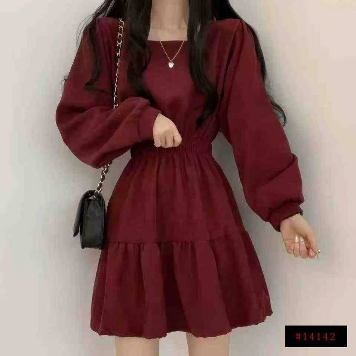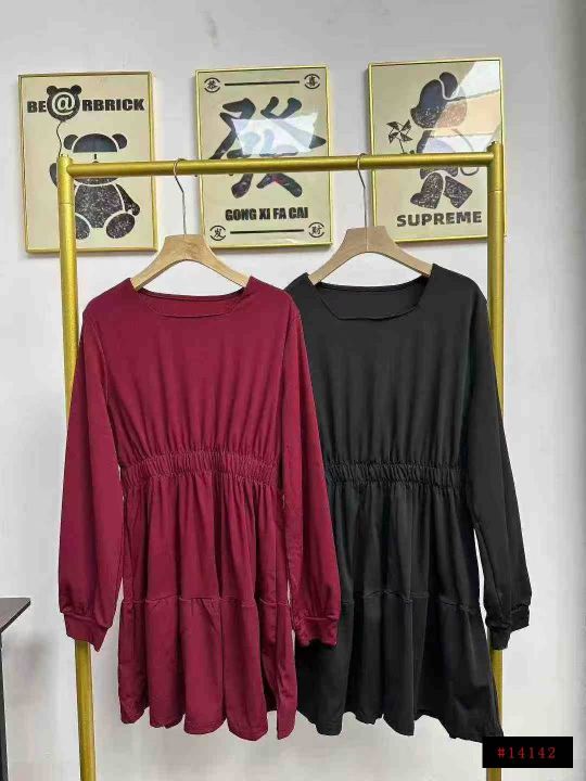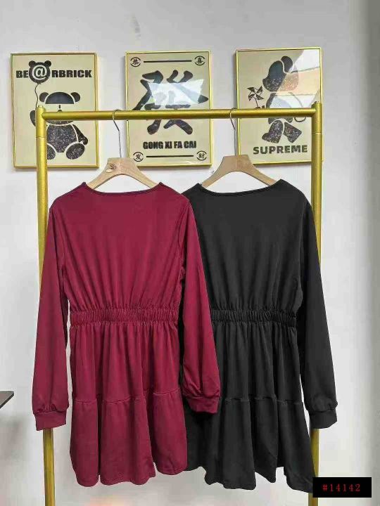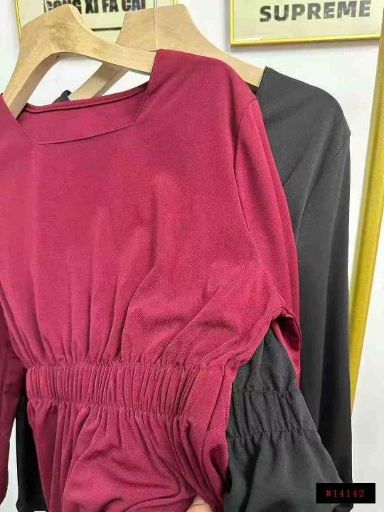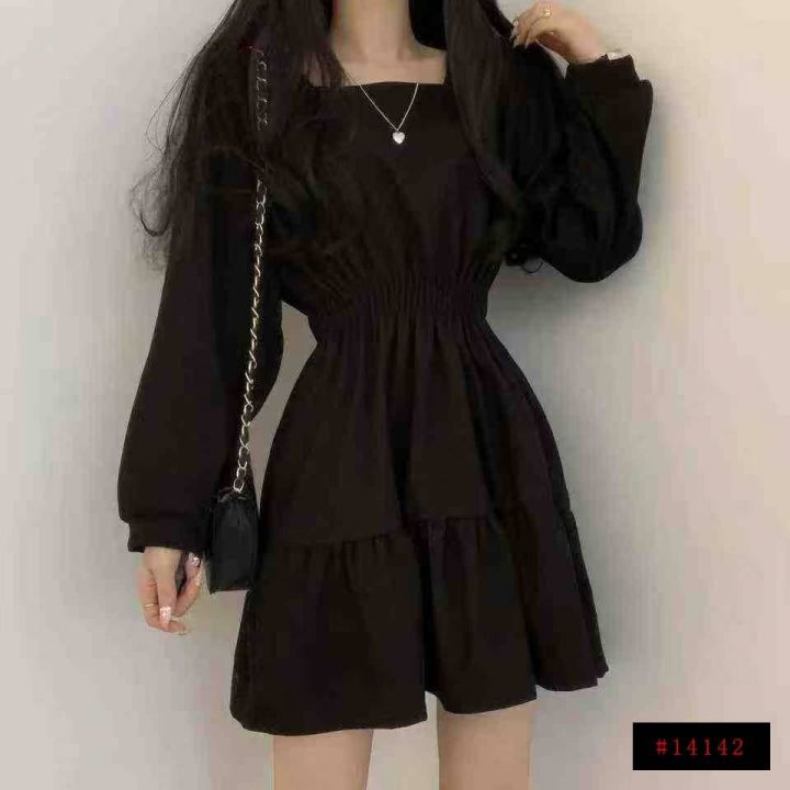 天猫在售款200件左右高品质小个子夏季方领显瘦褶皱甜美收腰长袖连衣裙,码数S-XL,单款两色,独立包装带吊牌@_@