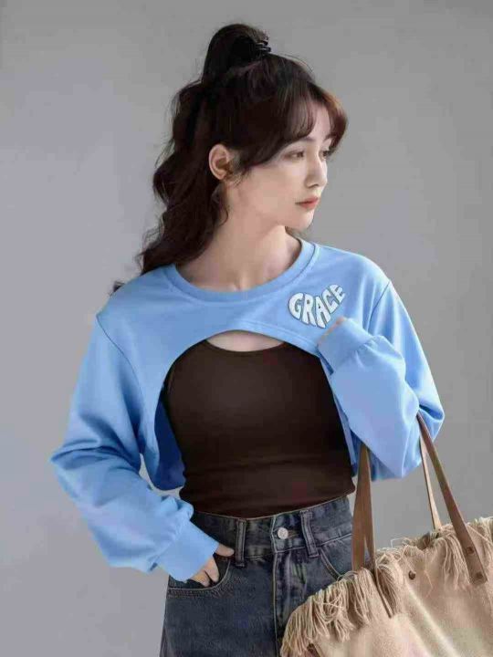 纯棉短款辣妹卫衣,设计感新款罩衫鱼鳞布靓妹上衣,28...