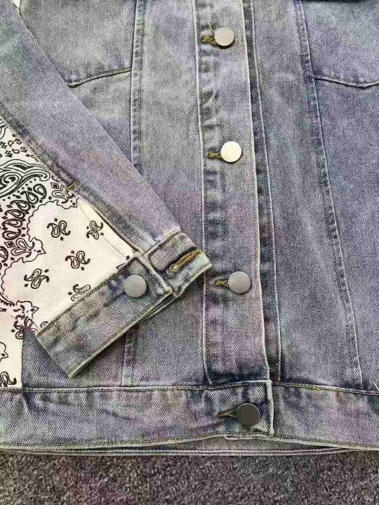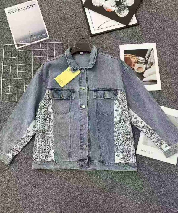 ☕️男女同款牛仔外套1096件全清20元,分货21元,宽松版码数S到XL,精品独立包装,腰果花复古拼接牛仔外套女设计感小众韩版宽松春秋夹克潮