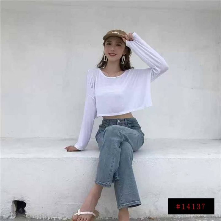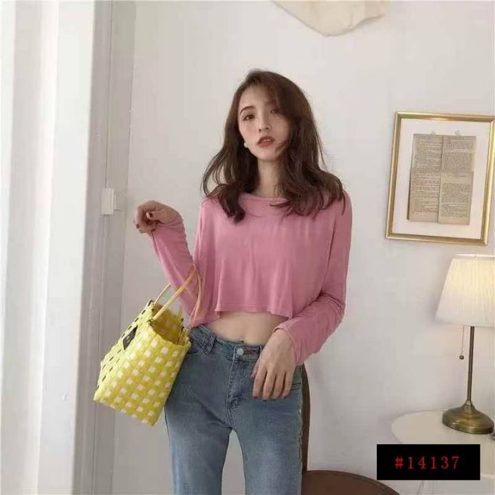 240件左右慵懒风露脐洋气短款靓妹宽松高腰露腰长袖T恤上衣,莫代尔面料柔软舒适高弹力,单款色多,尺码XS-XL,独立包装!全清2.9@_@