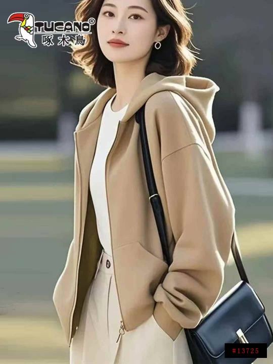 休闲连帽卫衣外套女2025春秋新款开衫上衣,1到6码,图...