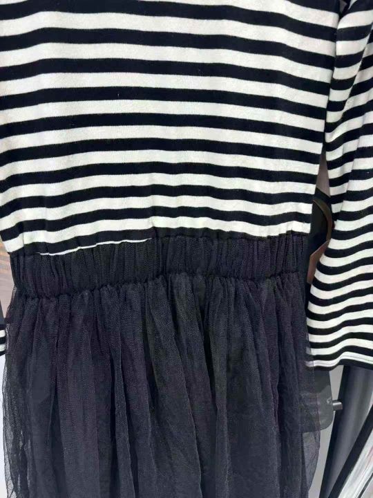 70条春装新款韩版高级感气质条纹T恤网纱蓬蓬长袖连衣裙,面料柔软舒适高弹力,尺码S-M,独立包装!福利秒杀价6.9 不分货