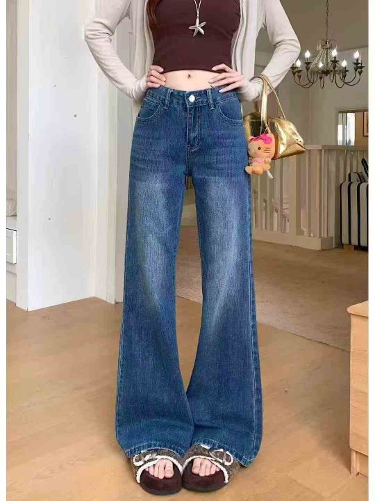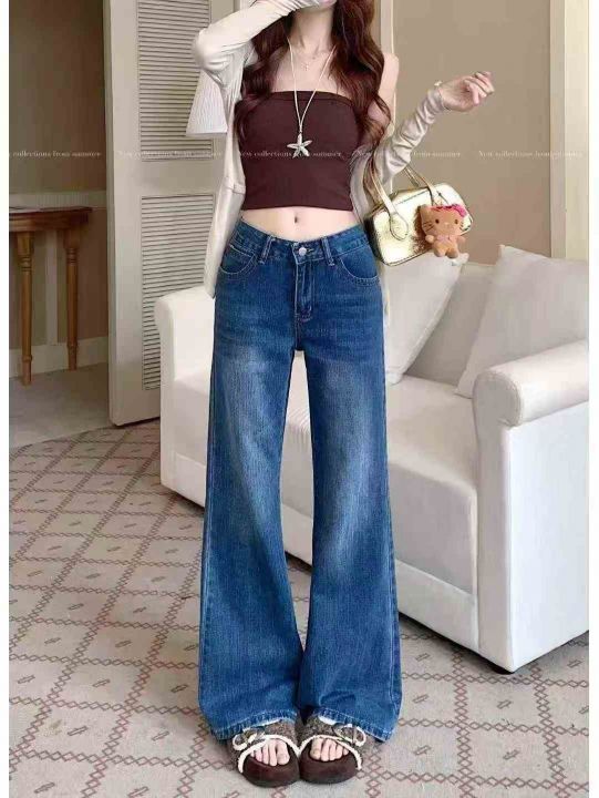 牛仔裤女秋冬复古蓝色小个子百搭宽松直筒裤长裤