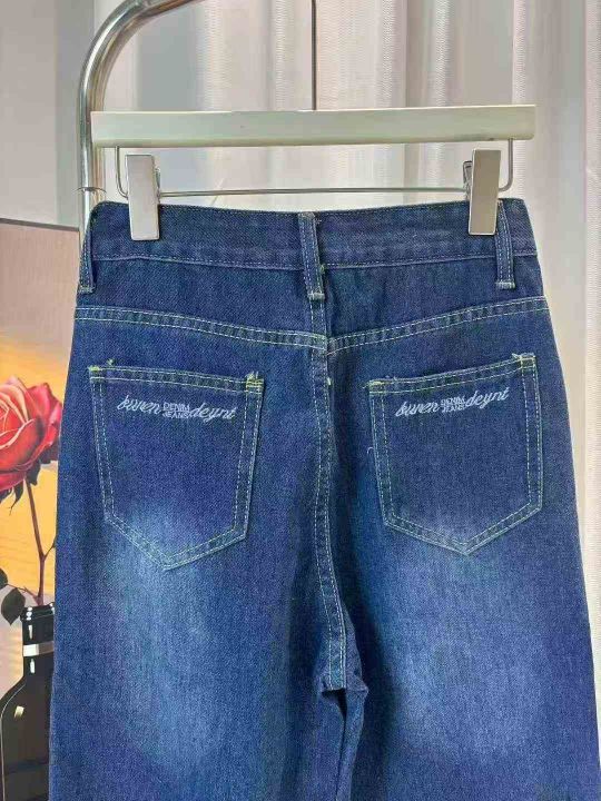 牛仔裤女秋冬复古蓝色小个子百搭宽松直筒裤长裤码数...