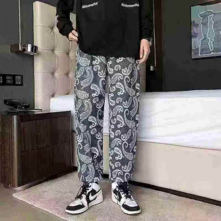 194条,腰果花印花休闲裤男秋季新款欧美ins潮牌嘻哈老爹裤宽松束脚裤子,独立包装,码数M-3XL,全清6.9元,分货➕1