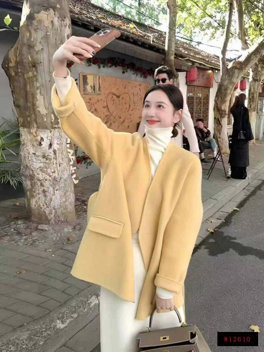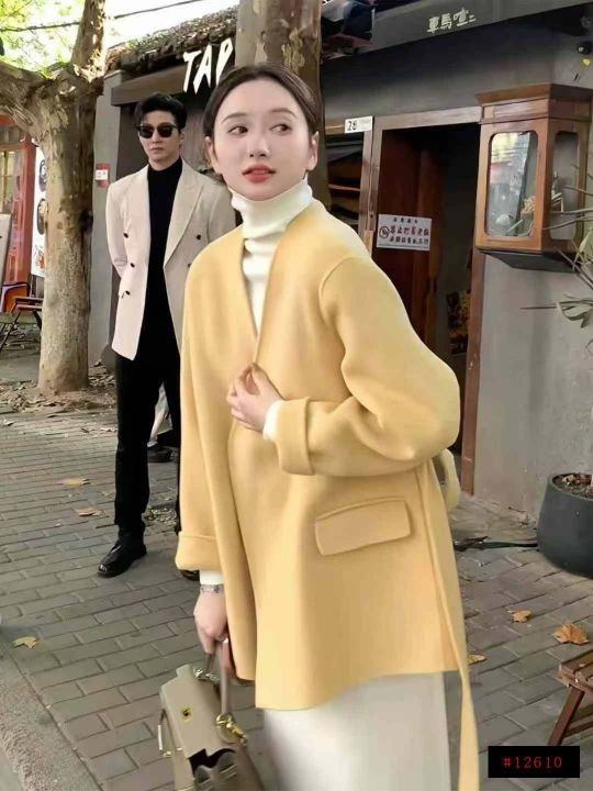 60件韩版气质绑带收腰开衫毛呢外套大衣女新款秋冬季高端宽松上衣,码数S—XL,独立包装,全清24.8分货加1@_@