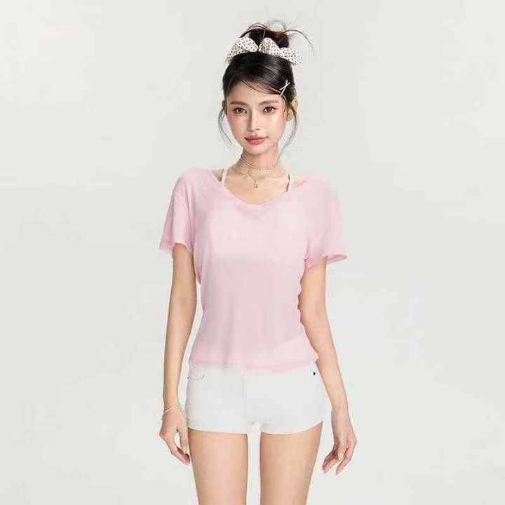 上新全清:3.8一件韩系清爽感V领设计防晒百搭上衣,[...