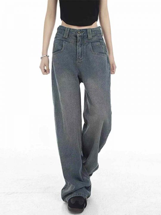 春秋新款网红复古直筒阔腿牛仔裤,独立包装带腰卡,可...