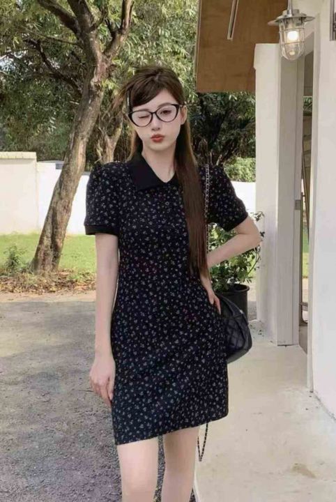 夏季新款法式复古收腰显瘦Polo领赫本风小黑,独立包装,含棉后领有包边,码...