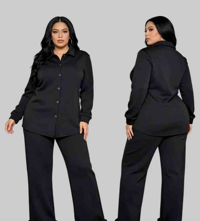 外贸跨境新品法式休闲慵懒时尚两件套家居服宽松通勤衬衫裤套装女 ,图片款...