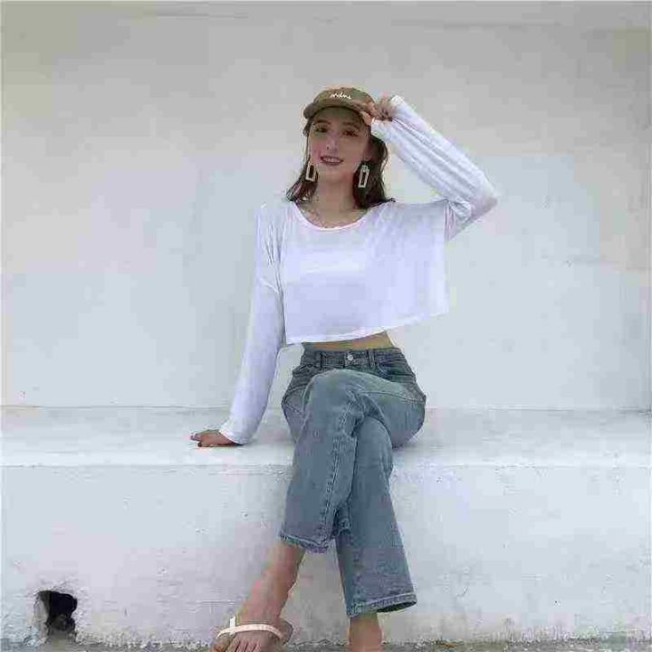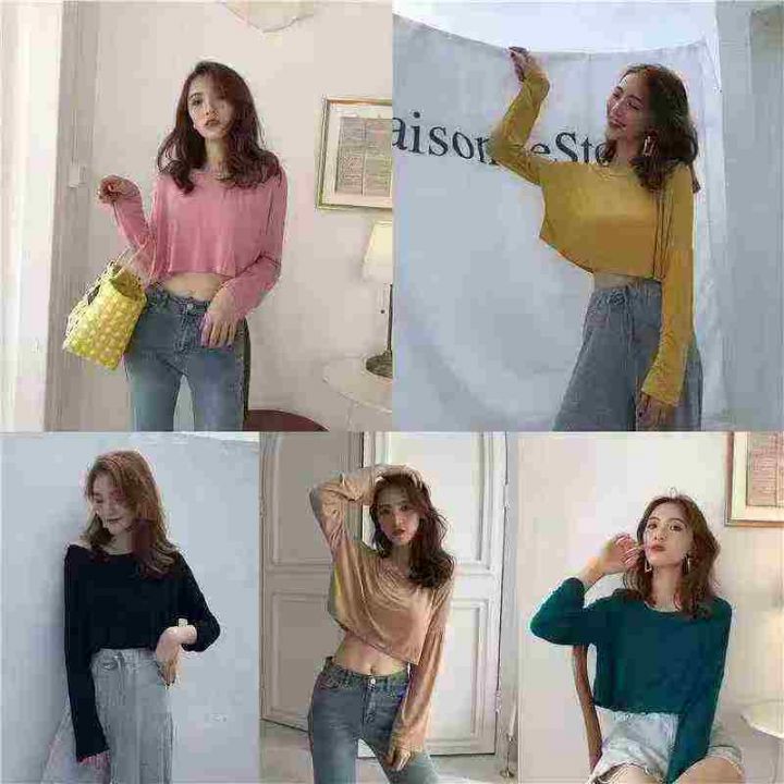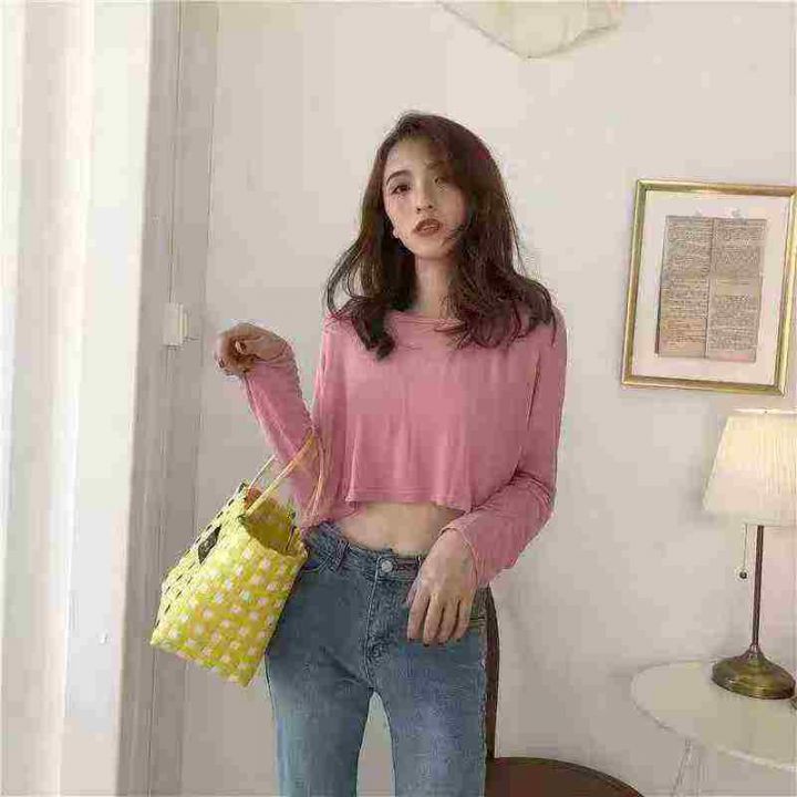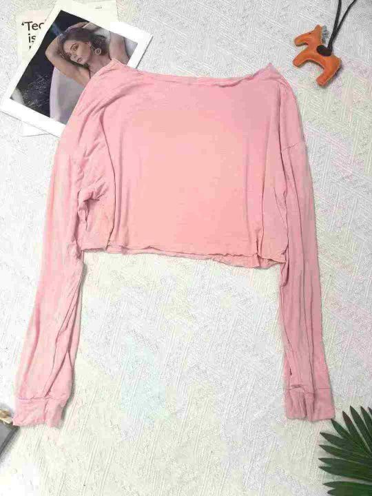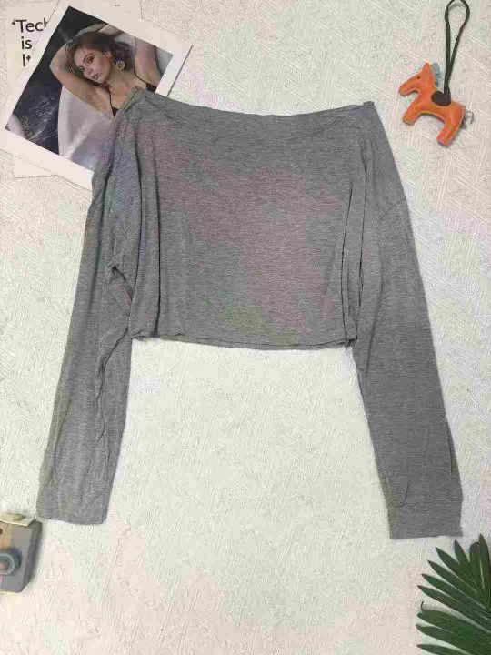 240件左右慵懒风露脐洋气短款靓妹宽松高腰露腰长袖T恤上衣,莫代尔面料柔软舒适高弹力,单款色多,尺码XS-XL,独立包装!全清2.9