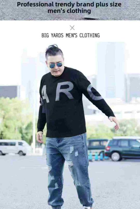 春秋季男士弹力小脚潮流破洞宽松长裤抽绳设计松紧腰牛仔裤