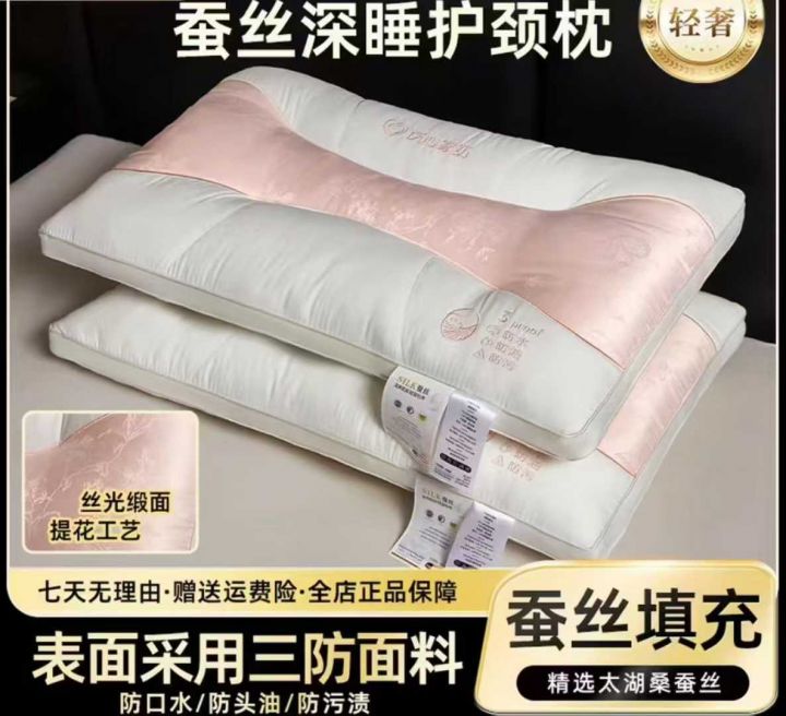 蚕丝护颈枕,中间拼接缎面提花,好棉好面料,立体工艺,十几块一只,价格便...
