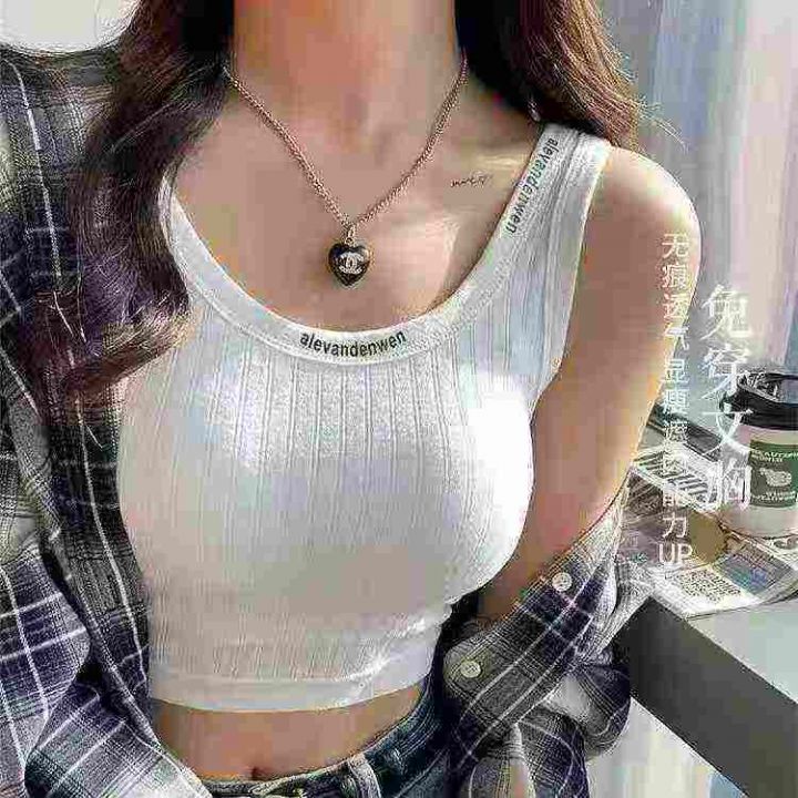 ☕️带胸垫字母设计感美背无钢圈外穿宽肩背心女上衣内...