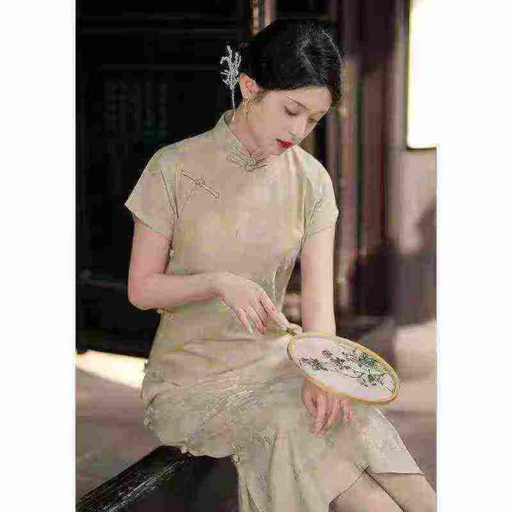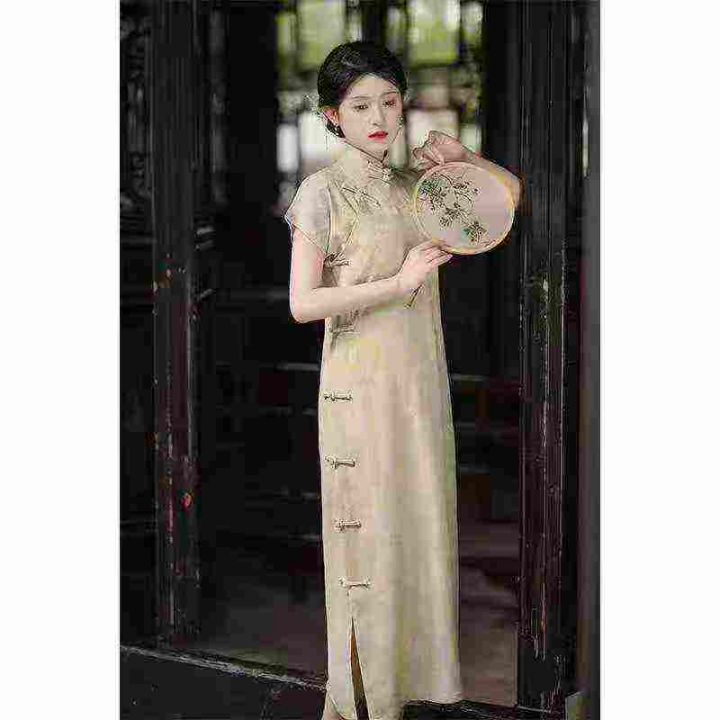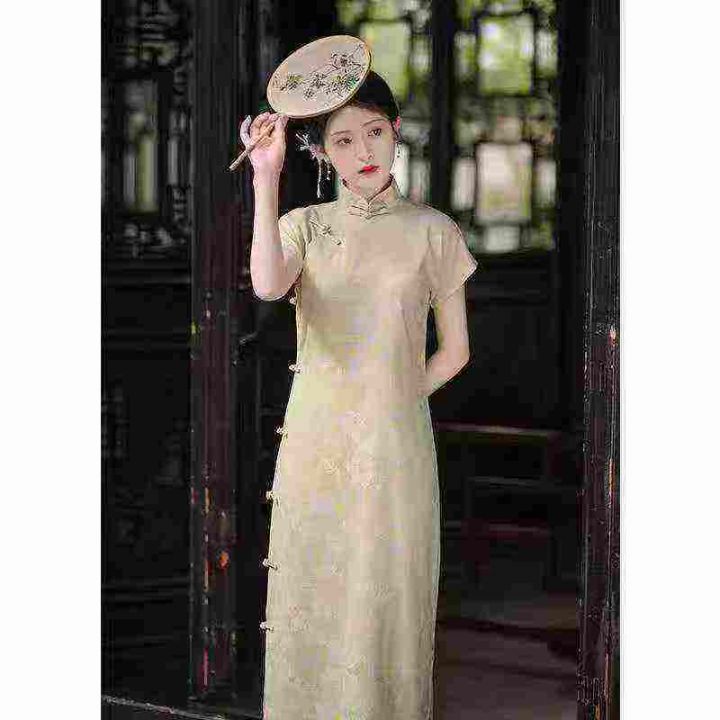 新中式盘扣优雅气质收腰旗袍长裙,❤️35件左右,[666]尺码S-XXL,工厂新货,独立包装无瑕疵