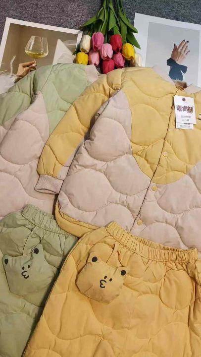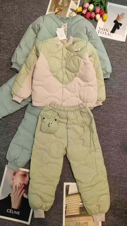 儿童轻薄夹棉百搭保暖棉衣套装,[爱心]80套左右,码数100-150,穿4岁-12岁,万佳档口货,原包装️无瑕疵,实体店品质