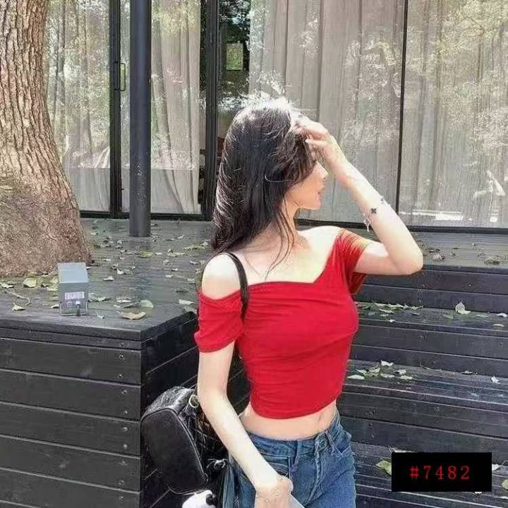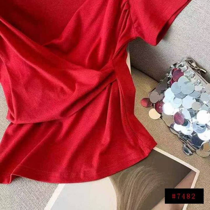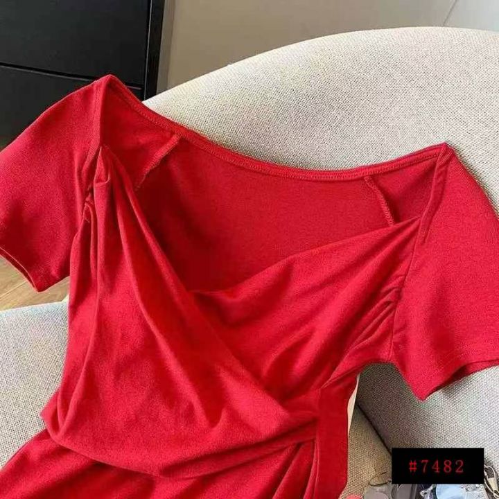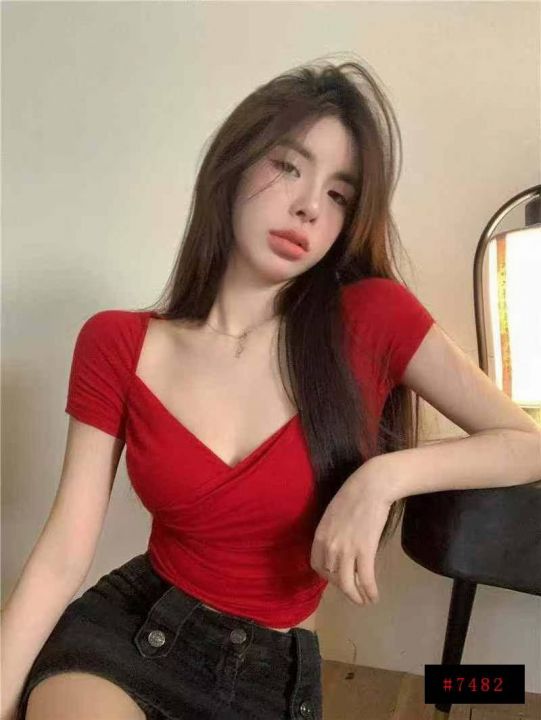 [發]纯欲辣妹性感交叉v领短袖120件左右网红新款,独立...