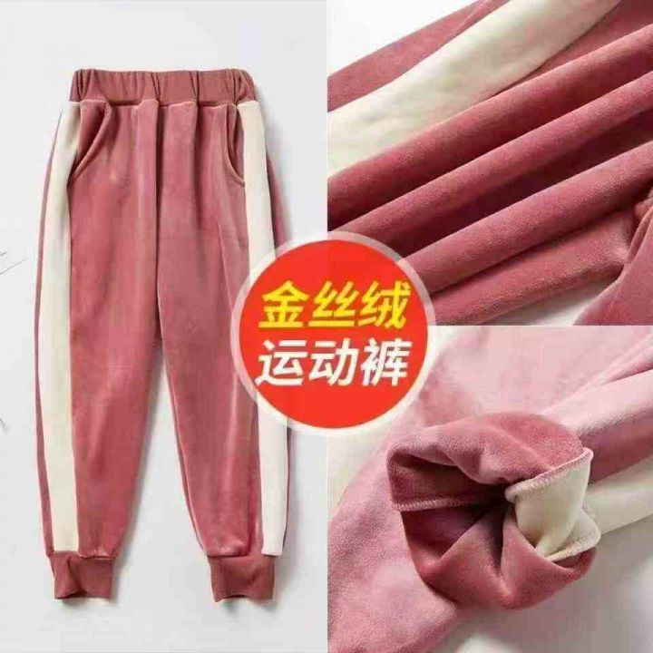 儿童运动裤加绒加厚秋冬新款外穿金丝绒一体休闲保暖裤...