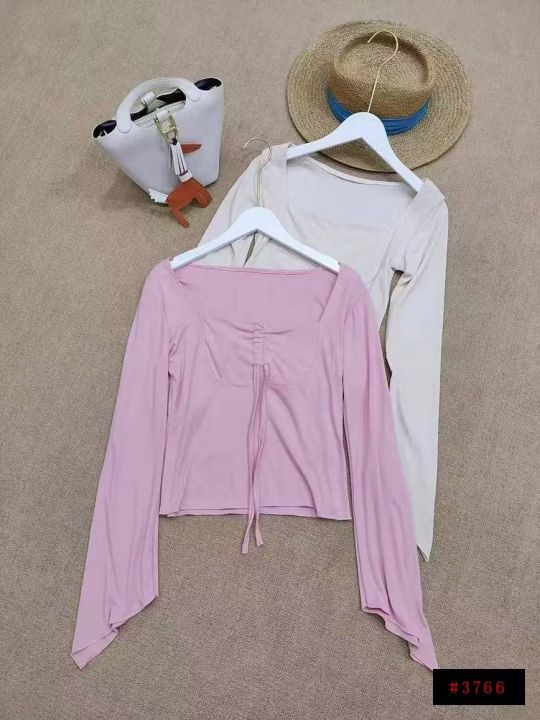 [月亮]:纯欲系带不规则袖口辣妹长袖上衣