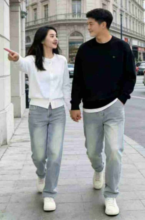 春夏季新款高弹力洗水棉网红复古浅蓝色男女同款牛仔老爹裤,独立包装带吊牌...