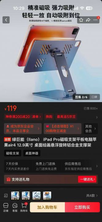 绿巨能、ipad12.9寸铝合金平板磁吸支架,全新盒装,原...