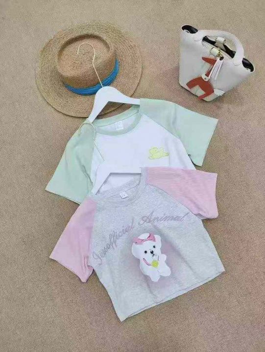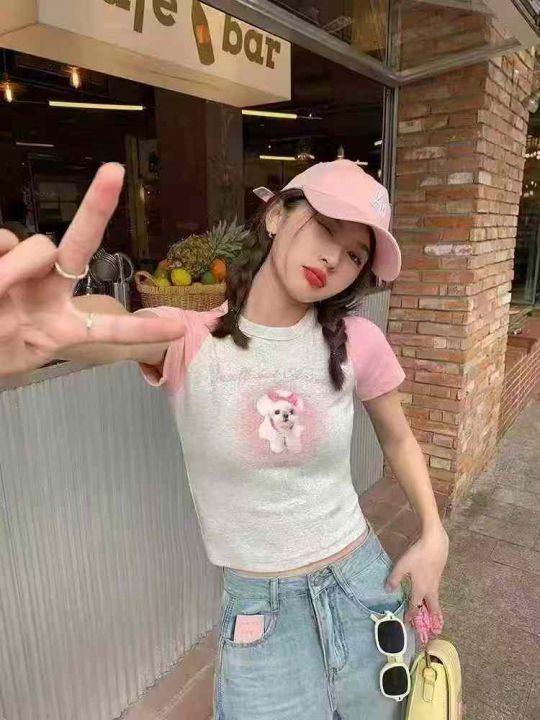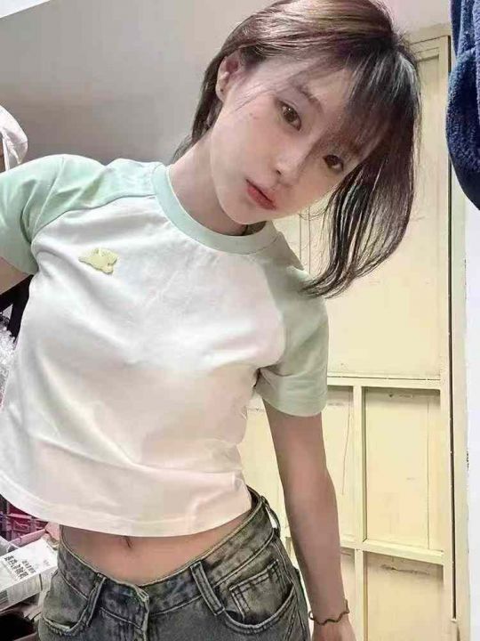 [月亮]:美式插肩纯棉/棉拼冰丝辣妹T恤