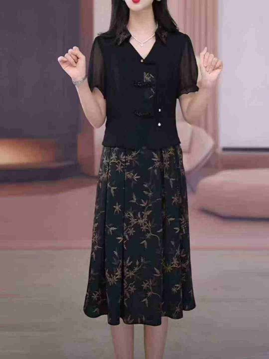 高档复古妈妈假两件连衣裙大码女装遮肉遮胯显瘦裙子,...