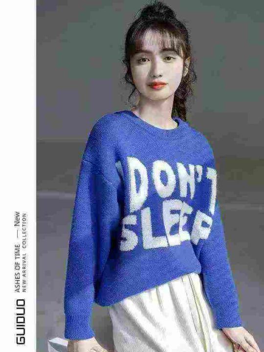 美式复古男女圆领针织衫百搭气质宽松情侣装小众毛衣秋冬毛衣,独立包装,12...