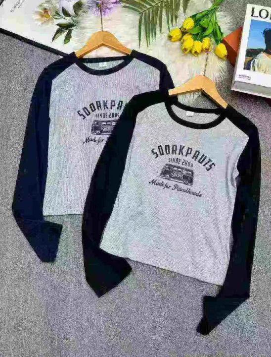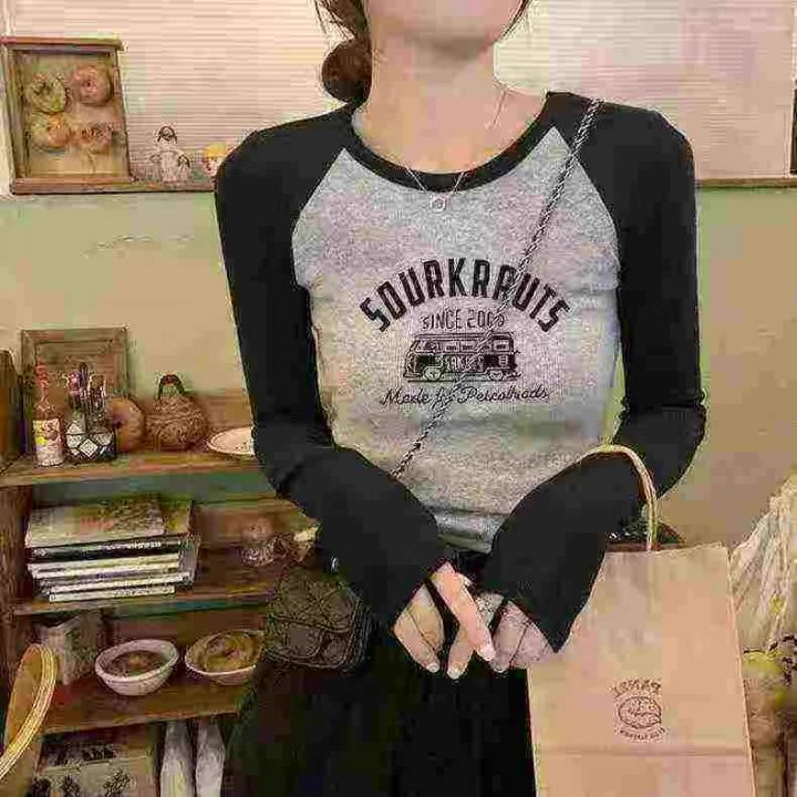 全清价6.5撞色插肩长袖修身显瘦螺纹辣妹T恤,独立包装...