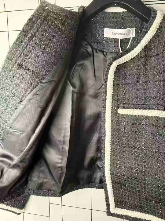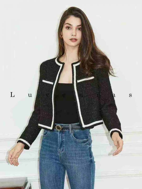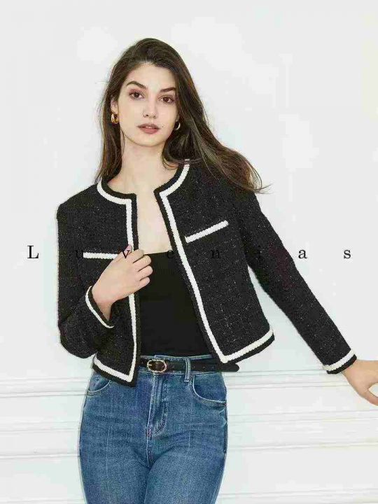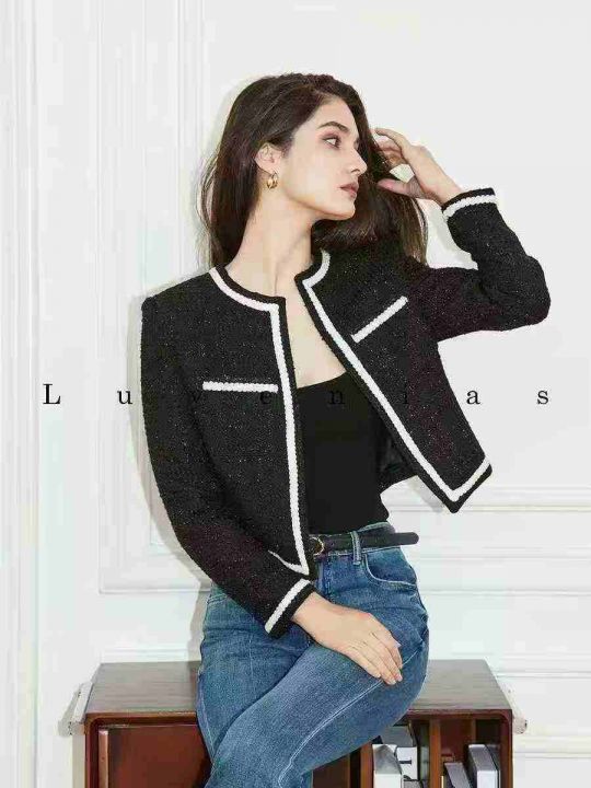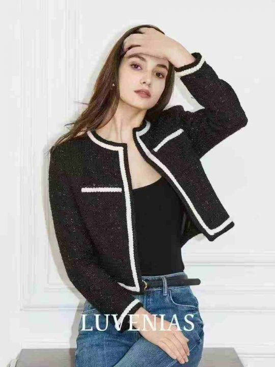 25.8清56件女小香风短款外套女黑色韩版显瘦小香风秋季新款高端轻奢气质上衣 码数S-M- L 独立包装带吊牌